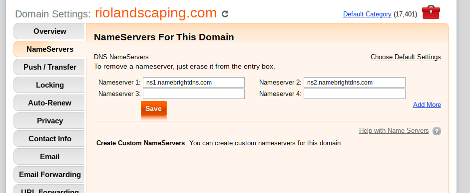 Then enter NameBright's nameservers